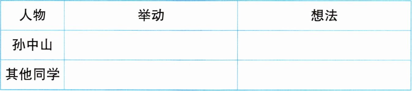三、面对不懂的问题,孙中山的举动和其他同学有什么不同?他们分别是怎么想的?你更赞同谁的想法?请结合整篇课文完成下面的表格,并谈谈自己的观点。