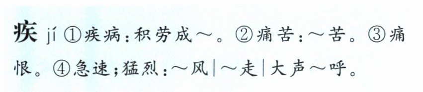2. 句③中的“疾”字有以下解释,请给下列词语中的“疾”选择正确的解释。(填序号)