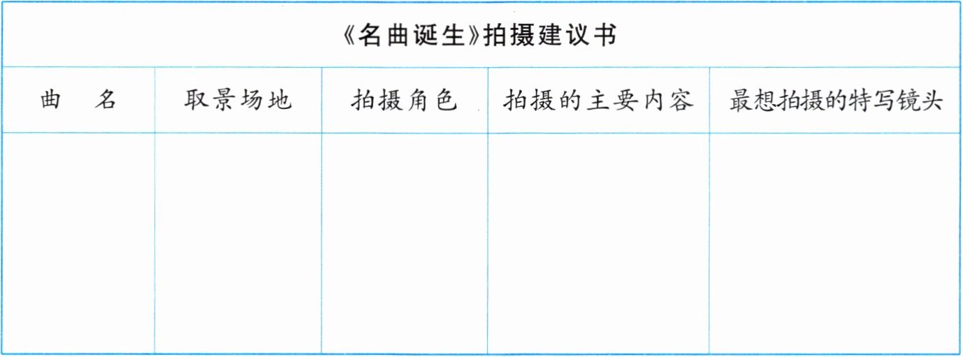 3. 某电视台节目组想拍摄一档名为《名曲诞生》的栏目,请你根据短文内容写一写拍摄建议书。