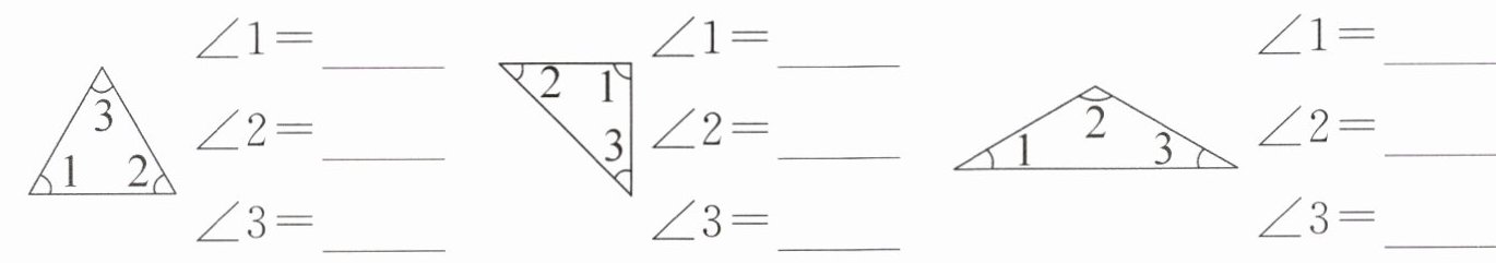 $\angle 1 = ($ )° $\angle 2 = ($ )° $\angle 3 = ($ )°