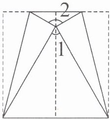 二、将一张正方形纸对折之后展开,出现一条折痕,再将正方形纸的左上和右上两个角折到刚才折出的折痕上,如图,折出的$\angle 1$等于$60^{\circ}$,求$\angle 2$的度数。