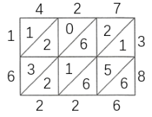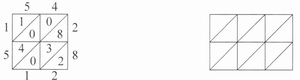 2. 15世纪意大利的一本算术书中介绍了一种“格子乘法”。仿照下面的例子算出“$427×38$”的积。