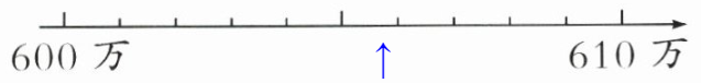2.一个七位数,它的百万位上是 6,万位上是 5,千位上是 8,其余各位上都是 0,这个数写作( )。先把这个数用“↑”在下图中标出来,再把这个数“四舍五入”到万位约是( )。(4 分)