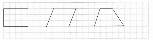 3. 在下面的方格纸中分别画一个长方形、一个平行四边形和一个梯形,要求长方形长4厘米、宽3厘米,平行四边形的一条边长4厘米,梯形的上底和下底分别长2厘米和5厘米。(小方格的边长是1厘米)