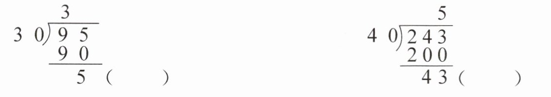 一、说出各题的商是几,并在算式的相应位置写出来。