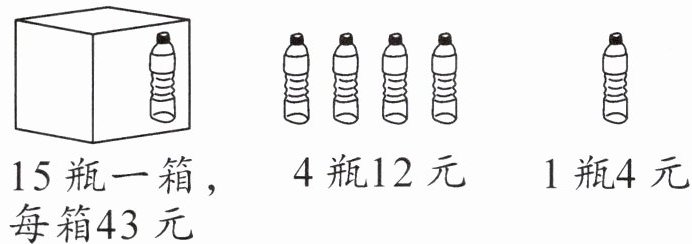 2元<3元<4元,尽量买15瓶一箱的,其次4瓶一组的,最后单瓶的