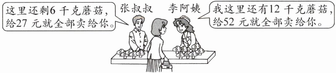 1. 如果两个菜贩卖的蘑菇质量是一样的,哪个的更优惠?(5分)