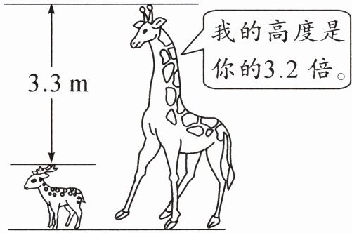 (2)解:设梅花鹿身高是x米,则长颈鹿身高是3.2x米。3.2x-x=3.3 x=1.5 3.2x=3.2×1.5=4.8