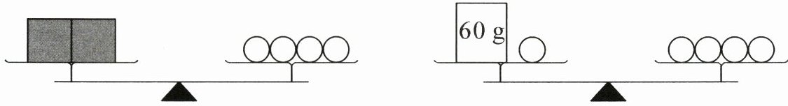 1. 下图中的天平两边均平衡,根据图示关系,一个涂色正方形 = ( )g。(4分)