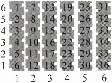 (3)指示灯上显示:13号、15号、28号、36号柜子是空的,请你用数对分别表示它们的位置。(4分)