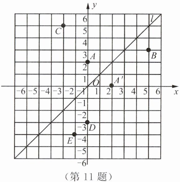 11. 如图所示,在平面直角坐标系中,直线$l:y = x$是第一、三象限的角平分线.