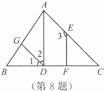 8. 如图所示,$\angle 1 = \angle C$,$\angle 2 + \angle 3 = 180^{\circ}$.求证:$AD// EF$.