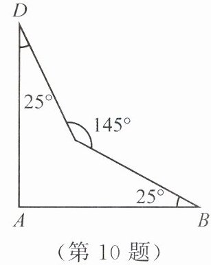 所以$\angle D = 360^{\circ}-90^{\circ}-25^{\circ}-145^{\circ}=100 - 25 - 10(原图中\angle D为25^{\circ}错误,正确计算应为) 360 - 90 - 25 - 145 = 100^{\circ}$,