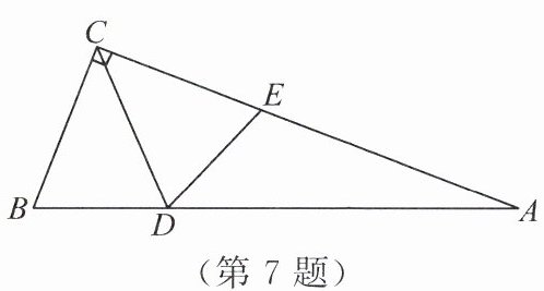7. 如图所示,在$\triangle ABC$中,$\angle ACB = 90°$,将$\triangle CBD$沿$CD$折叠,使点$B$恰好落在$AC$边上的点$E$处. 若$\angle A = 22°$,则$\angle BDC$的度数为.