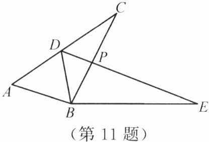 11. 如图所示,$△ABC≌△DBE$,点$D$在边$AC$上,$BC$与$DE$交于点$P$,已知$∠ABE = 162^{\circ}$,$∠DBC = 30^{\circ}$,$AD = DC = 2.5$,$BC = 4$.求: