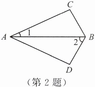2. 如图所示,AC = AD,BC = BD,∠1 = 25°,∠2 = 60°,则∠C 的度数为().
