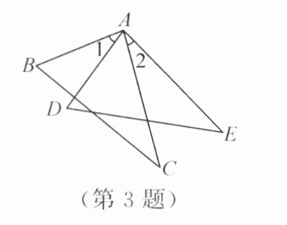 3. 如图所示,若AC=AE,∠1=∠2,则用“SAS”判定△ABC≌△ADE需添加的一个条件是.