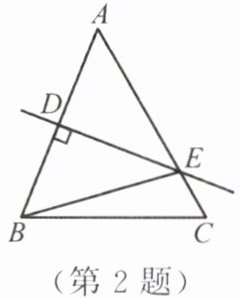 2. 如图所示,在△ABC中,BC=8cm,AB的垂直平分线交AB于点D,交AC于点E,△BCE的周长为18cm,则AC的长为.