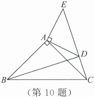 10. 如图所示,在△ABC,△ADE中,∠BAC=∠DAE=90°,AB=AC,AD=AE,已知C,D,E三点在同一条直线上,连结BD.