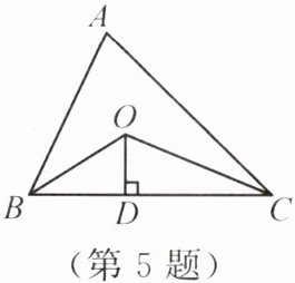 5. 如图所示,在$\triangle ABC$中,$BO$,$CO$分别平分$∠ABC$和$∠ACB$,$OD⊥BC$于点$D$,$OD=4$,若$\triangle ABC$的面积为25,则$\triangle ABC$的周长为。