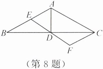 8. 如图所示,在$\triangle ABC$中,$AD$是$BC$边上的中线,$E$是$AB$边上一点,过点$C$作$CF// AB$交$ED$的延长线于点$F$。