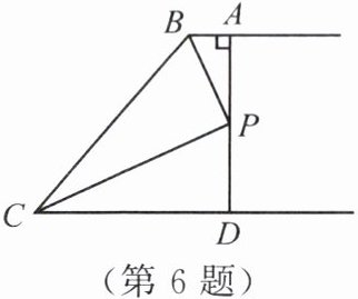 6. 如图所示,$AB// CD$,$BP$和$CP$分别平分$∠ABC$和$∠DCB$,$AD$过点$P$且与$AB$垂直,垂足为$A$,交$CD$于点$D$。若$AD=8$,则点$P$到$BC$的距离是。