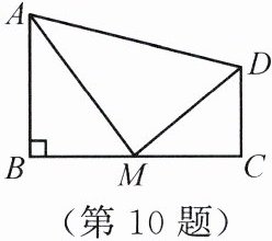10. 如图所示,在四边形$ABCD$中,$∠B=90^{\circ}$,$AB// CD$,$M$为$BC$边上的一点,且$AM$平分$∠BAD$,$DM$平分$∠ADC$,求证: