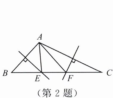 2. 如图所示,在$\triangle ABC$中,$BC = 4$,$\angle BAC > 90^{\circ}$. $AB$的垂直平分线交$BC$于点$E$,$AC$的垂直平分线交$BC$于点$F$,则$\triangle AEF$的周长为().