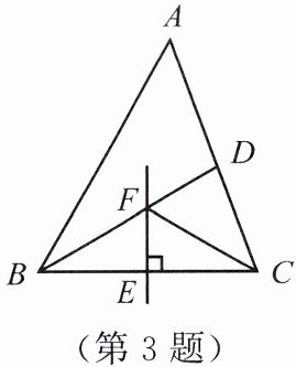 3. 如图所示,在$\triangle ABC$中,$BD$平分$\angle ABC$,$BC$的垂直平分线交$BC$于点$E$,交$BD$于点$F$,连结$CF$. 若$\angle A = 50^{\circ}$,$\angle ABD = 30^{\circ}$,则$\angle ACF$的度数为().