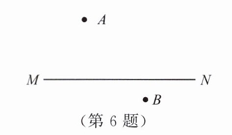 6. 如图,已知学校$A$,$B$在道路$MN$的异侧,在$MN$上建公交站$P$,使得点$P$到$A$,$B$的距离相等,请用尺规作图法确定点$P$的位置.(保留作图痕迹,不写作法)