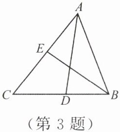 3. 如图所示,在△ABC中,AD是角平分线,BE是中线。若∠BAD = 40°,则∠CAD的度数为。若AC = 6cm,则AE的长度为。