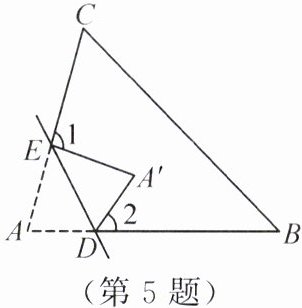 5. 如图所示,在折纸活动中,小明制作了一张三角形纸片$ABC$,点$D$,$E$分别在边$AB$,$AC$上,将$\triangle ABC$沿着$DE$折叠压平,使点$A$与点$A'$重合. 若$\angle A = 75^{\circ}$,则$\angle 1 + \angle 2$等于().
