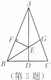 5. 如图所示,在等腰三角形ABC中,AB=AC,AD是BC边上的中线,∠ABC的平分线BG分别交AD,AC于点E,G,EF⊥AB,垂足为F。