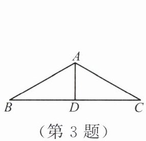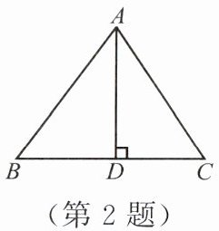 2. 如图所示,在△ABC中,AB=AC,AD⊥BC,垂足为D。若∠BAC=70°,则∠BAD的度数为。