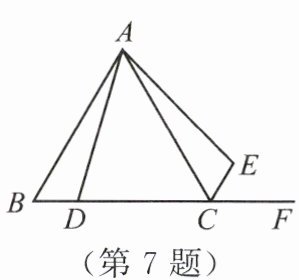 7. 如图所示,已知△ABC为等边三角形,D为BC上一动点,AD=AE,∠DAE=60°。若AB=4,当四边形ADCE的周长取最小值时,BD的长为()。