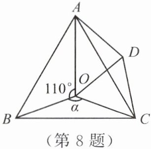 8. 如图所示,$O$为等边三角形$ABC$内一点,$\angle AOB = 110^{\circ},\angle BOC = \alpha$.以$OC$为一边作等边三角形$OCD$,连结$AD$.
