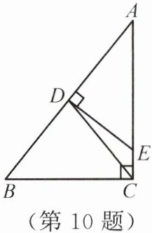 10. 如图所示,在$Rt\triangle ABC$中,$\angle ACB = 90^{\circ}$,$CD$是$AB$边上的中线,$DE\perp AB$于点$D$,交$AC$于点$E$.