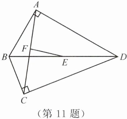11. 如图所示,在四边形$ABCD$中,$\angle BCD = \angle BAD = 90^{\circ}$,$E$,$F$分别是对角线$BD$,$AC$的中点.