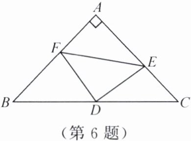 6. 如图所示,在$Rt\triangle ABC$中,$\angle BAC = 90^{\circ}$,$AB = AC$,$D$是$BC$的中点,$AE = BF$。求证:$\triangle DEF$为等腰直角三角形。