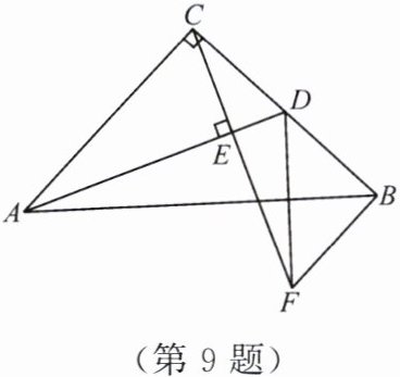 9. 如图所示,在$\triangle ABC$中,$\angle ACB = 90^{\circ}$,$AC = BC$,$D$为$BC$的中点,$CE\perp AD$于点$E$,$BF// AC$交$CE$的延长线于点$F$,连结$DF$,求证:$AB$垂直平分$DF$。