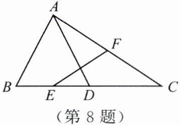 8. 如图所示,在$\triangle ABC$中,$D$是$BC$上的一点,$AD = AB$,$E$,$F$分别是$BD$,$AC$的中点。若$AC = 8$,则$EF$的长为。