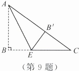 9. 如图所示,在 $Rt\triangle ABC$ 中,$\angle B = 90^{\circ}$,$AB = 3$,$BC = 4$,将$\triangle ABC$ 折叠,使点 $B$ 恰好落在 $AC$ 边上的点 $B'$ 处,$AE$ 为折痕,则 $B'E$ 的长为.