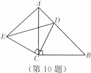 10. 如图所示,$\triangle ACB$ 与 $\triangle ECD$ 都是等腰直角三角形,$\angle ACB = \angle ECD = 90^{\circ}$,$D$ 为 $AB$ 边上的一点.若 $AD = 5$,$BD = 12$,求 $DE$ 的长.
