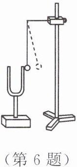 6. 如图所示,在“演示声音由物体振动产生”的实验中,将正在发声的音叉紧靠悬线下的轻质小球,小球被反复弹开。在此实验中,小球的作用是(