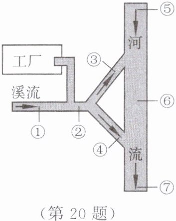 20. 某校科学兴趣小组的同学想了解工厂排放的废水对溪流、河流水质的影响,要从图中的$7$个采集点(箭头表示水流方向)采集水样,其中重要的采集点是(