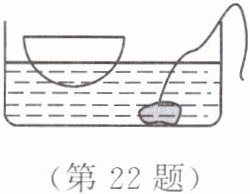 22. 如图所示,一个大碗漂浮在盆内的水中,盆底沉没着一块用细线拴着的小石块。将小石块提出并放入大碗中,大碗仍然漂浮。与原先相比,大碗受到的浮力