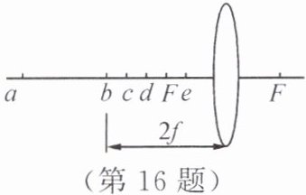 16. 如图所示,在“探究凸透镜成像规律”的实验中,点燃的蜡烛分别放在a、b、c、d、e五个位置。