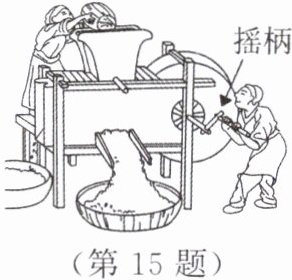 15. 如图所示为元代《农书》描绘的农人使用扇车筛选谷物的情景。当把谷物倒入扇车时,谷物在