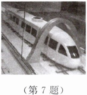 7. 如图所示为中国科学技术馆的展品“惯性车”,小火车在平直轨道上匀速行驶,当它将要从框架的下方通过时,小火车顶部的孔中突然向上弹出一个小球,该小球越过框架后,又落到通过框架的小火车上,并恰好落回弹出小球的孔中。下列说法中,不正确的是(忽略空气阻力)(