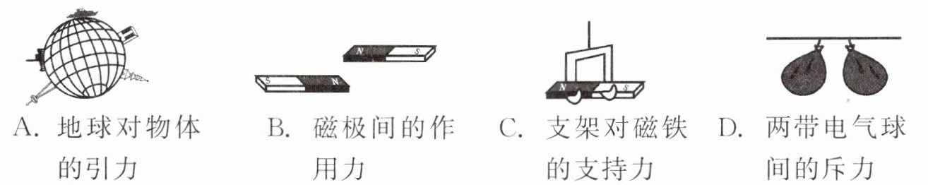 9. 如图所示的各种力中,必须两物体接触才能发生相互作用的是(